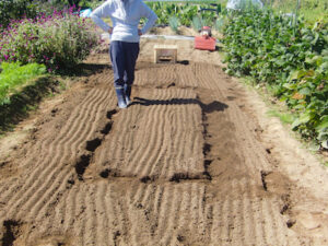 ➎ベッドの表面を平らにならすと完成です。種まきがしやすく、苗が植えやすくなります。