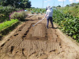 畝作りは野菜作りの基本作業です。寒い中、暑い中、作業は楽しいことばかりではありません。この作業をていねいにやることで収穫量の多少におおきな影響を与えます。