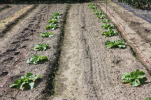 - マルチを使用しない限り、ベット幅(畝の幅)は自在にできます。葉物野菜には畝の幅が狭くても大丈夫。経験を積めば野菜の大きさが分かり畝の幅も分かるようになります。